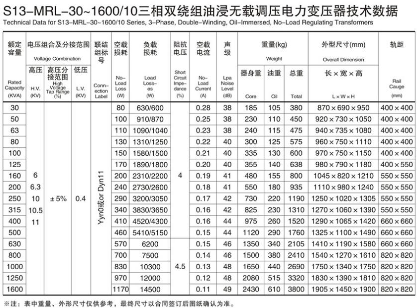 其中,S表示三相油浸式电力变压器,9(11)为水平性能代号